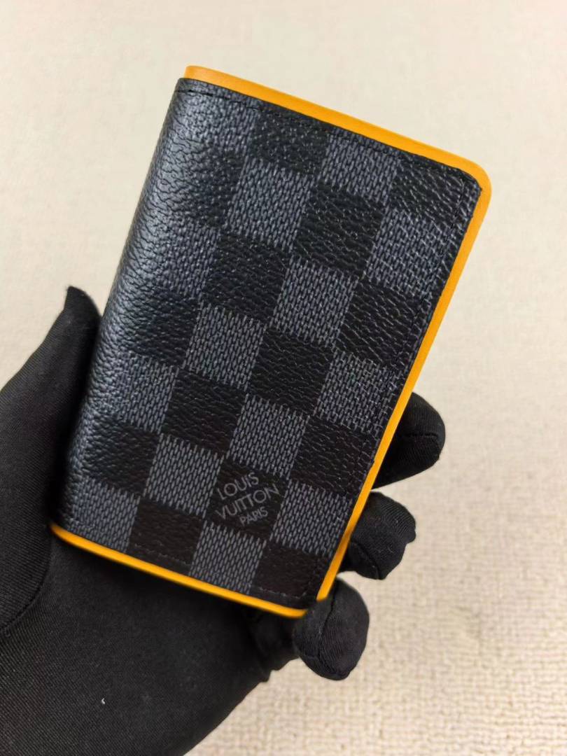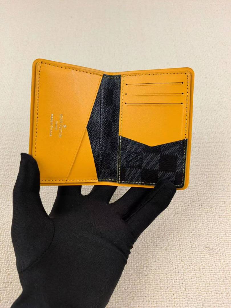 • Louis_Vuitton_Pocket_Organizer_Wallet_Damier_Graphite_Canvas_Yellow_Leather_Lining_And_Multiple_Card_Slots_Black_Square_Yellow_N64502_Yellow